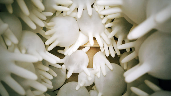 The box resembles the space and emotion that Josi experiences. It is tall enough for most viewers to enter and tight enough for the space to be imposing upon the audience. The door of the box can close behind you, meaning that inside can become very dark. This signifies seeing only darkness as the claustrophobic thoughts turn into panic. On every wall of the inside of the box there are blown up latex gloves filling the area. They are attached so that they are reaching out into the middle and reducing the space that is available.